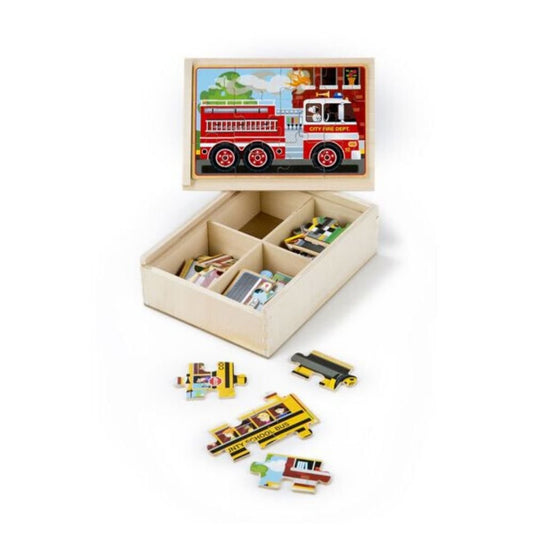 Melissa & Doug Vehicles 4-in-1 Wooden Jigsaw Puzzles in a Storage Box