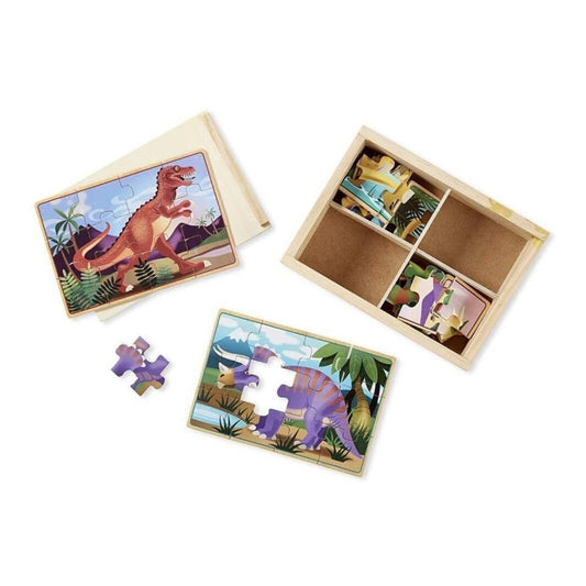 Melissa & Doug Dinosaurs 4-in-1 Wooden Jigsaw Puzzles in a Storage Box
